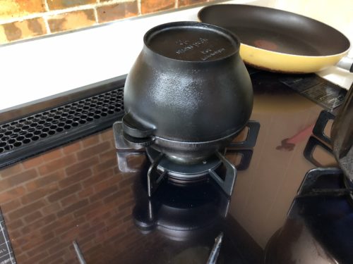 コロダッチポットのこっちの方に玉ねぎや食材を入れるんだけど、