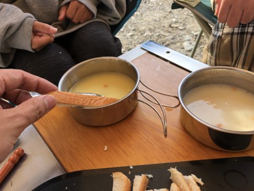 お湯を沸かすして粉を溶かすだけでオッケーなスープだし。