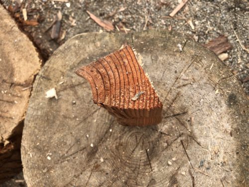 年輪と手斧の刃がこんな感じだと割れにくいです。