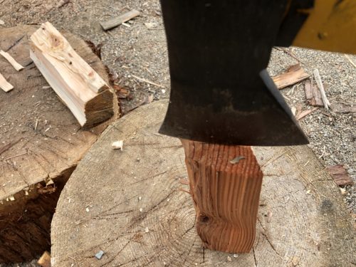 手斧を使って一撃で薪割りが出来るようになるコツについて