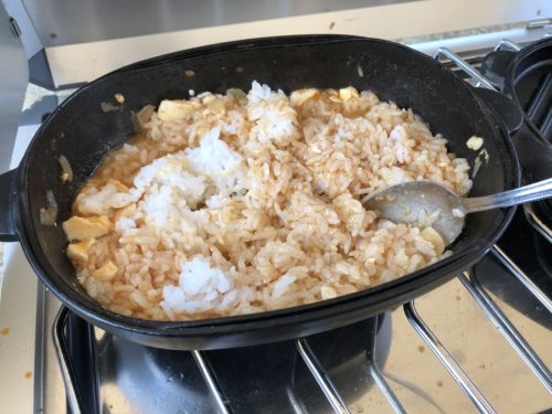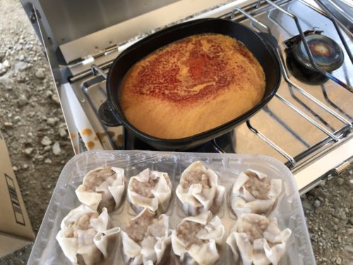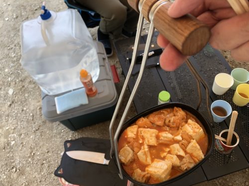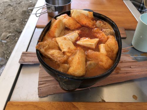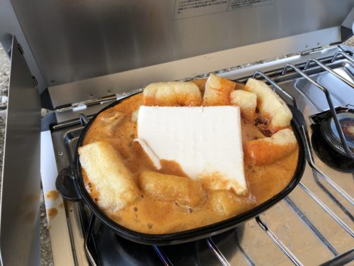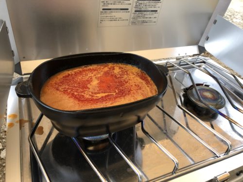 まずスノーピークのコロダッチオーバルにスンドゥブの元を入れる。